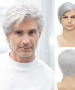 Men’s White Wigs Short Wigs Natural Looking Heat Resistant Synthetic Hair with Adjustable Cap 180g