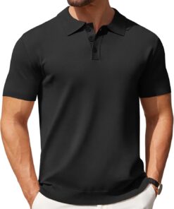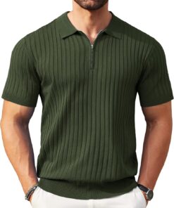 COOFANDY Men’s Zipper Polo Shirts Short Sleeve Ribbed Knit Polo T Shirts Fashion Casual Golf Shirts
