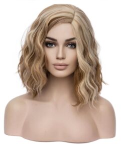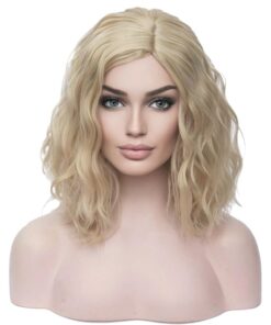 BERON 14″ Women Girls Short Curly Bob Wavy Wig Body Wave Halloween Cosplay Daily Party Wigs (Blonde)