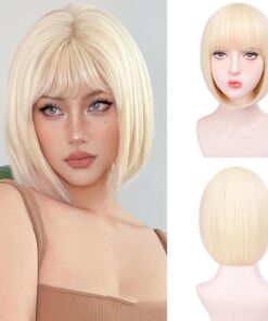Blonde Bob Wigs for White Women – 12” Short Bob Wigs With Bangs Natural Fashion Synthetic Wig Colorful Synthetic Hair for Daily Cosplay Halloween