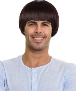 Short Mushroom Wig for Men-Synthetic 60s Bowl Cut Wigs for Anime Movie Music Costume Halloween Cosplay Party (Dark Brown)