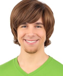 Shaggy Mens Wig Funny 70s Wigs for Men for Disco Rocker Costumes – Short Brown Wig for 60s Cosplay Halloween Parties (Brown)