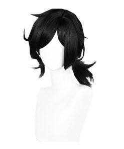 Short Black Cosplay Wig for Men Anime Costume Straight Hair Halloween Synthetic Wig for Comic Show (Black)