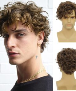 Short Brown Wigs for Men Curly Layered Natural Looking Side Part Hair Heat Resistant Halloween Synthetic Wigs with Wig Cap (Brown)