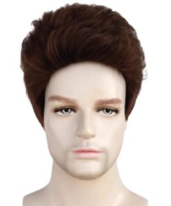 Mens Brown Wig Short Guy Brown Wig Handsome Male Layered Hair Heat Resistant Synthetic Hair for Halloweeen Cosplay Costume Party
