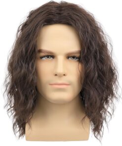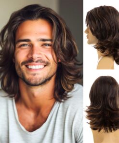Mens Brown Wavy Wig – Medium Length Natural Look Middle Part Heat Resistant Synthetic Hair for Men Costume, Cosplay, Halloween Party