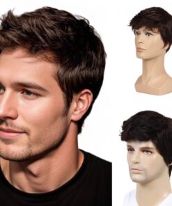 Men Short Brown Wig Handsome Male Daily Costume Synthetic Full Wigs Natural Brown Hair Replacement Wig(Fit 21inch-22.5inch Head Circumference)