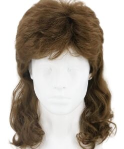 Men’s Wigs 70s 80s Rock Wig Brown Wavy Mullet Wigs for Men Halloween Costume Theme Party Wig