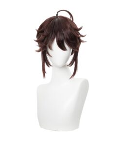 Men’s Short Red Brown Ponytail Wig Fashion Male Role Anime Cosplay Wigs Game Costume Fancy Dress Wigs Heat Resistant Synthetic Wig for Halloween Party
