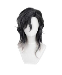 Mens Black Grey Layered Cosplay Wigs Male Wolf Tail Wig Realistic Anime Game Costume Wigs Cosplayer Synthetic Wig for Party Anime Conventions