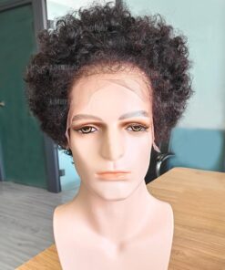 Mens 4C Edges Kinky Curly 13X6 Lace Front Wigs Human Hair for Man Spiral Curly Short Pixie Cut Deep Part Wig with Curly Edges Preplucked Natural Hairline Boy Cut 180density