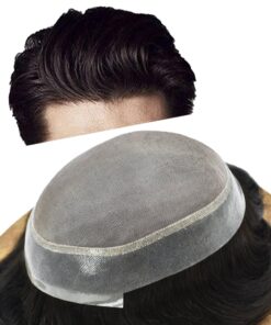 Men’s Hair Piece Toupee Real Human Hair Replacement System For Mens Hair System Fine Monofilament Mens Hairpiece Protesis Capilar Para Hombre 6”X8” #1B Off Black