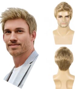 Mens Blonde Wig Short Straight Synthetic Blonde Hair Wigs for Male Guy Daily Wear Anime Costume Halloween Cosplay Party(Fit 21inch-22.5inch Head Circumference)
