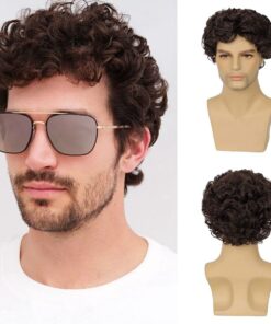 Mens Wig Short Curly Brown Wig Synthetic Costume Replacement Wig for Males