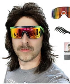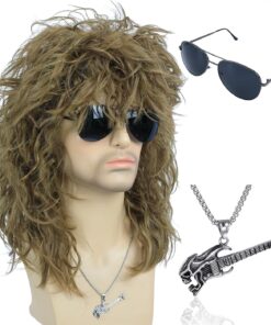 Morvally Men’s Women 80s Rocker Mullet Wig with Glasses and Necklace – Long Blonde Curly Glam Rock-Rockstar Wig – Perfect for Halloween, Cosplay, DIY Themed Costume Party