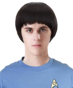 PARTY ZONE Short Black Luffy Cosplay Wig-80s Outfit For Men Synthetic Bowl Cut Mushroom Hair Anime Wigs Old Man Movie Party Halloween Vector Costume Wig (Black)