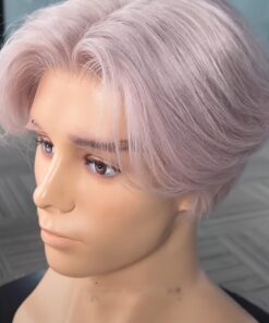 Real Human Hair Male Full Lace Wigs Short Pixie Cut Platinum Full lace Wig Boy Men Cut Shaved Mens Human Hair Wigs Daily Wear (13×6 lace front wig, Medium)