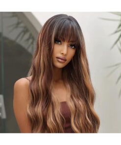 WEAREZ 1pc, Fashion Pick Dye Wig Women Big Wave Long Curly Hair Natural Full Head Set 73cm/29in Pick Dye Brown