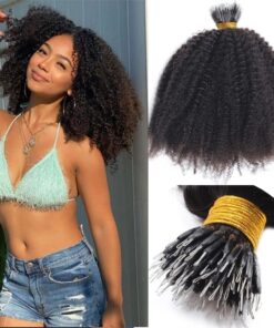 Nano Ring I Tip Human Hair Extension Afro Kinky Curly Nano Ring Hair Extension Micro Beads Small Curly Microlinks Hair Extension 100g 100strands (14inch 100strands, #Natural Black)