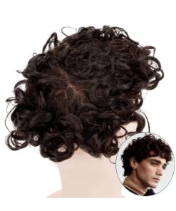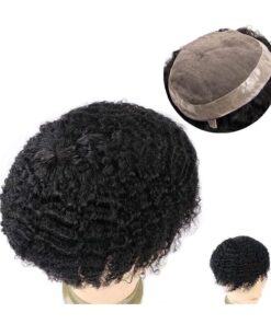 Mens Wig 25mm Curly Hairpiece Fine Mono Male Hair Prosthesis Men Toupee #2 Indian Human Hair Replacement System 7″ Remy Hair Male Curly Wig Toupee for Men(25mm curly 120%,6×9)