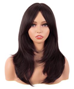 Medium Long Brown Wavy Wigs For Women Synthetic Full Hair Wigs With Bangs For Daily Use (brown)