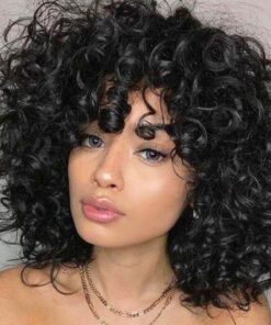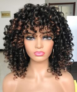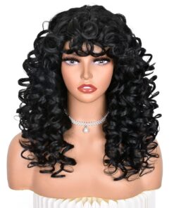 Curly Afro Wigs for Black Women Kinky Curly Wig with Bangs Synthetic Fiber Natural Looking Glueless Hair for Daily Wear