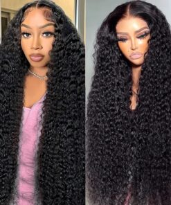28 Inch Deep Wave Lace Front Wigs Human Hair 180% Density Deep Curly Lace Front Wigs Human Hair Pre-Plucked 13×4 Black Curly Wigs for Women HD Transparent Lace Frontal Glueless Wigs Human Hair