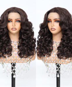 13×4×1 Curly Wig Pre Plucked Lace Front Wig Chocolate Brown #4 Natural Color 20Inch Glueless Synthetic Frontal Wigs Fluffy Bouncy Transparent Lace Suitable for Beginners