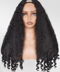 Afro Wig V Part Kinky Curly Wigs for Black Women, 180% Density Wear and Go Glueless Wig with Unique Bouncy Curls in the End, Synthetic No Leave out Clip in (#1B Black wig, 22 Inch)