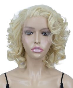Short Curly Lace Front Wig for Women Synthetic Hair Natural Hairline Wigs for Cosplay Daily Party Use(Blonde)