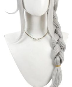 Game Cosplay Wig Long Silver Gray Hair Braided Wig with Bangs Cosplay Costume Fiber Wigs for Halloween Party