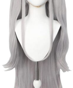 Game Cosplay Wig Gray White Hair Wigs Long Straight Wigs with Bang Cosplay Show Wig + Ears + Tail
