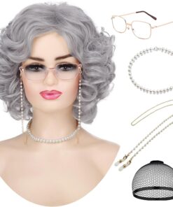MOSINA Ombre Gray Wig with Bangs Long Gray Wavy Wigs for Women Heat Resistant Wigs for Daily Party