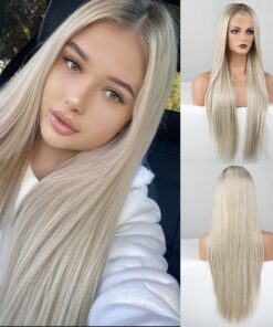 HAIRCUBE Blonde Lace Front Wigs, Ombre Platinum Blonde Long Straight Wigs Natural Hairline with Baby Hair 26 Inch