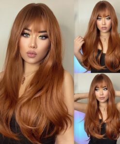 HAIRCUBE Auburn Wig with Bangs Long Curly Orange Wigs for Women,Natural Synthetic Wigs Heat Resistant Fibre Wig for Daily Use (pelucas de cabello natural)