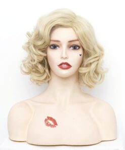 Short Blonde Wavy Wigs for Women Gold Curly Shoulder Length Natural Wig Synthetic Full Middle Part Wig for Role Play,Halloween,Daily Use