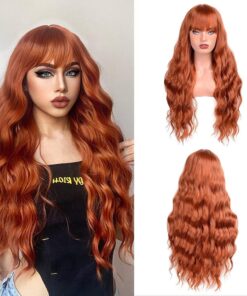 Auburn Wigs for Women,Long Curly Layered Wig with Bangs Synthetic Wigs Heat Resistant Wavy Hair for Party Cosplay Daily Use (26 Inch)