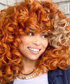 Auburn Curly Wigs for Black Women Short Wig with Bangs Soft Loose Curly Wigs for Women Synthetic Fiber Glueless Hair for Daily (Auburn)