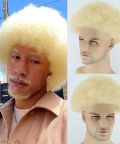 ZigZag Hair Blonde #613 Mix Brown Mens Toupee Fluffy Afro Curly Short Hair Full Lace Men’s Wig 8x10inch Brazilian Human Hair Tight Afro Curly Men’s Hair Systems Hairpiece (#613 Color, Full Lace)