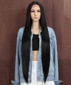 Style Icon 32-Inch Long Straight Wig Mid-Part Lace Front Silky Smooth Synthetic Black Wig