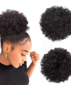 Yinmei Baibian Afro Puff Drawstring Ponytail Kinky Curly Bun Hair Synthetic Short Extensions Hairpieces Updo Hair for Black Women Girls(1B)