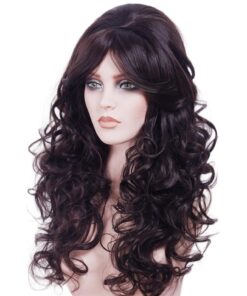 22 Inches Retro Beehive Dark Brown Wigs for Women Long Wavy Wig with Bangs Synthetic Natural Wig for 60s 70s 80s Cosplay,Halloween,Daily Use