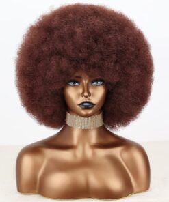 Xinran 8 inch Short Afro Kinky Wig for Black Women,Natural 70s Afro Wigs for Women, Short Afro Puff wigs(Auburn).