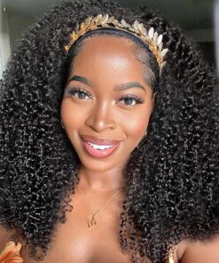 XSY Headband Wig Human Hair Kinky Curly 20 Inch Headband Wigs for Black Women Deep Curly Human Hair Wigs None Lace Front Wig 150% Density Natural Black Color