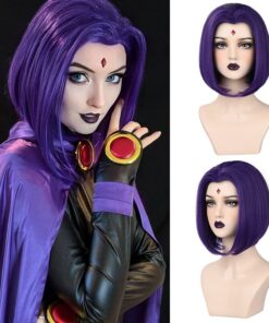 REECHO Purple Wigs for Cosplay – 14″ Short Wavy Bob Wig Synthetic Hair Replacement Wig for Women Halloween Cosplay Costume Daily Party