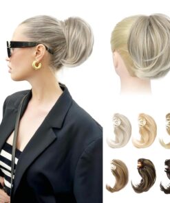 REECHO Ponytail Extension, 7″ Mini Claw Clip in Ponytail Hair Extensions Short Natural Straight Wavy Messy Hair Bun Hair Pieces for Women with Short Thin Hair – Ash Brown with White Ends