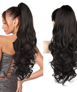 REECHO Ponytail Extension, 26 Inch Drawstring Ponytail Extension Long Curly Wavy Pony Tails Hair Extensions Natural Fake Synthetic Clip in Ponytail Hairpiece for Women Daily, Black Brown