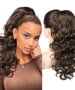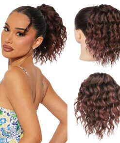 REECHO Ponytail Extension, 9″ Claw Clip in Short Curly Wavy Pony Hair Extension Jaw Clip on Pony Tail HP001 Hairpiece for Women – Chocolate Brown with Highlights
