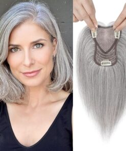 REECHO Real Human Hair Topper, 10 inch Women Hair Toppers for Thinning Hair, 100 Percent Human Hair Large Coverage Natural Hairpiece Wiglet, Swiss Base 4.5″x3.5″, Light Grey