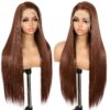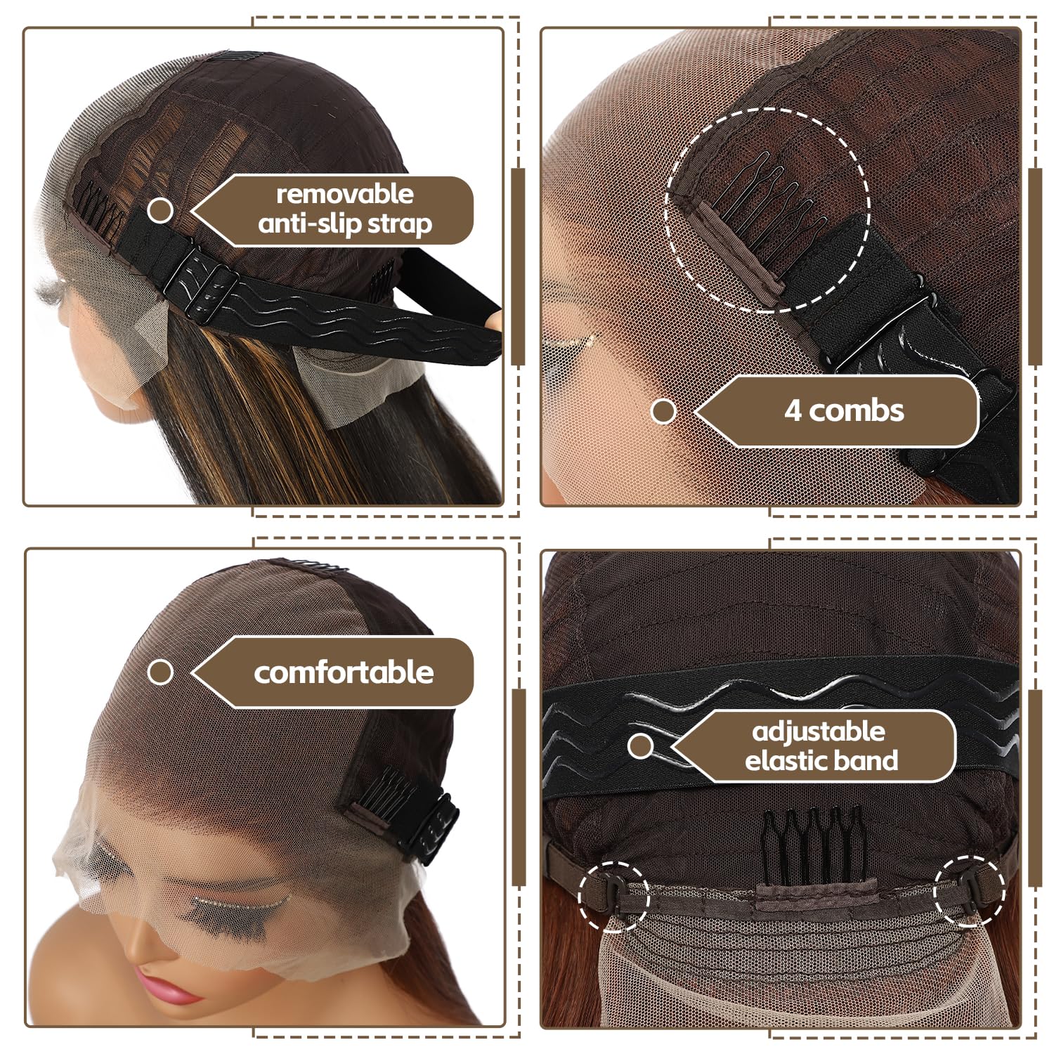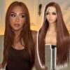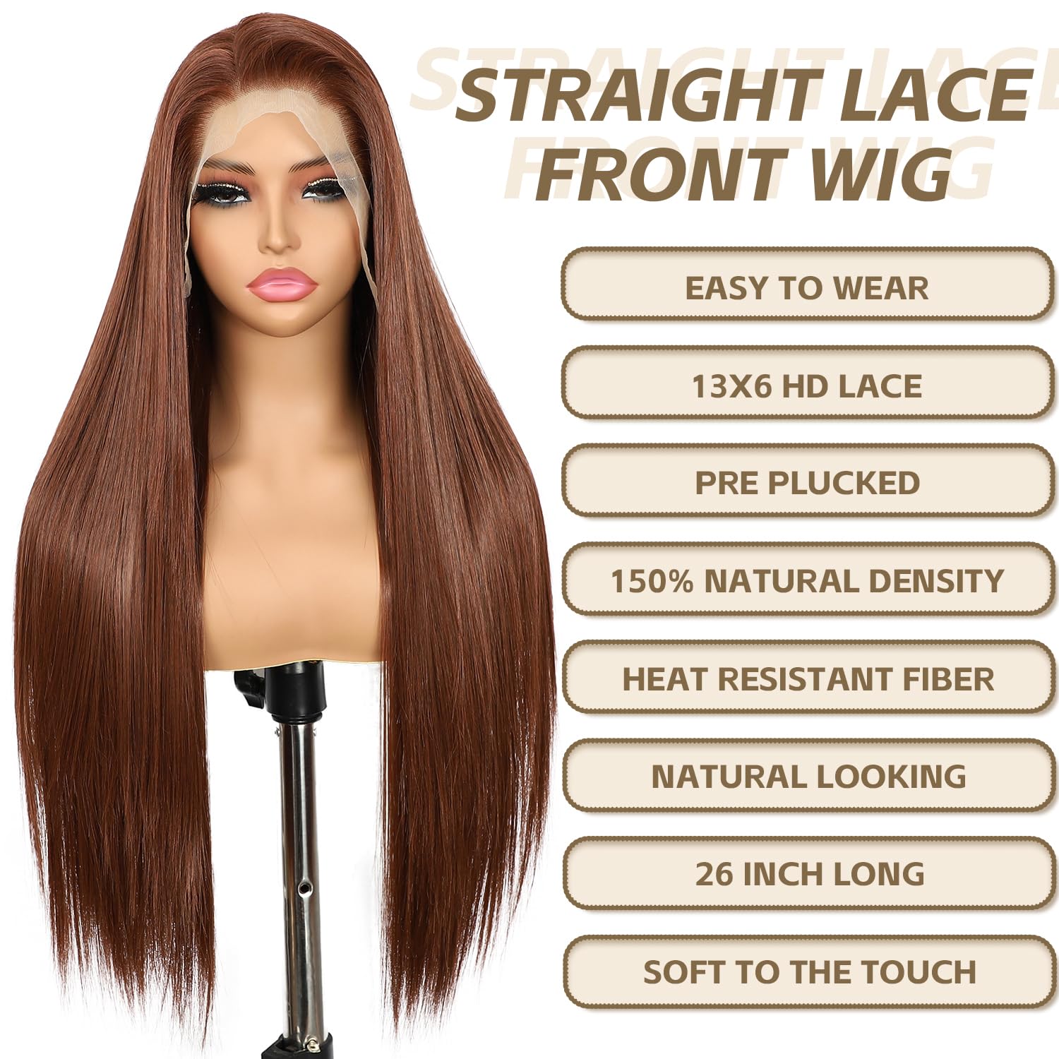 13X6 Auburn Brown Glueless Wig Synthetic Long Straight Lace Front Wigs for Women Pre-Plucked Ready to Wear Upgraded with Premium Fiber 26 Inch Daily Party Use